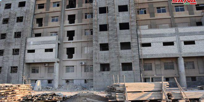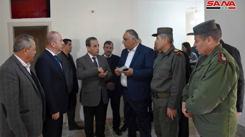 وقدم المهندس منهل نادر مدير مشروع تأهيل المشفى الوطني شرحا حول الأعمال المنفذة التي شملت إعادة تأهيل الأجزاء المتضررة من جراء الإرهاب وتأهيل الطوابق والاستمرار في أعمال الإكساء بنسبة تنفيذ وصلت إلى 75 بالمئة متوقعا الإنتهاء من أعمال الترميم بحلول نهاية أيار القادم.