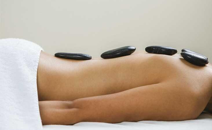 يساعد المساج بالحجر الساخن على التخفيف من توتر العضلات، تحسين تدفق الدم وتخفيف الآلام. أثناء التدليك، يتم وضع أحجار ساخنة في مناطق مختلفة حول الجسم بالكامل. وقد يُستخدم في بعض الأحيان أحجار باردة.
