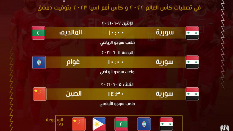 المشهد – رياضة يخوض منتخبنا في الصين مرحلة الإياب من مبارياته في تصفيات كاس العالم وكاس اسيا والتي ستنطلق اعتبارا من السادس من حزيران القادم وفيما مايلى جدول مباريات منتخبنا :