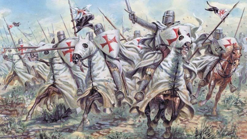 من الروايات المعروفة عن نشأة الماسونية، يوردها الكاتب الماسوني "بات مورغان" في كتابه "أسرار الماسونيين الأحرار"، والكاتبان الماسونيان "جون هاميل" و"روبرت غيلبرت" في كتابهما الموسوعي "الحركة الماسونية: احتفال بالصنعة". ويؤكدون أن الماسونية هي امتداد لتنظيم عسكري "منقرض" كان يعرف باسم "فرسان الهيكل" ظهر في نهاية الحملة الصليبية الأولى (1095-1099) على المشرق العربي.