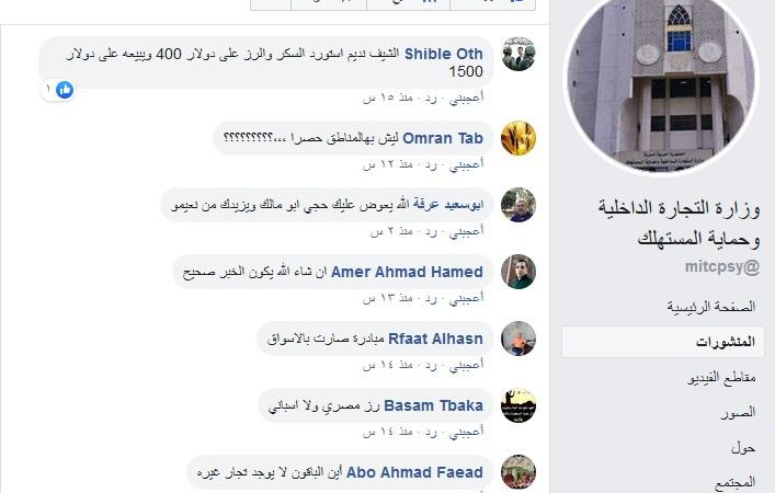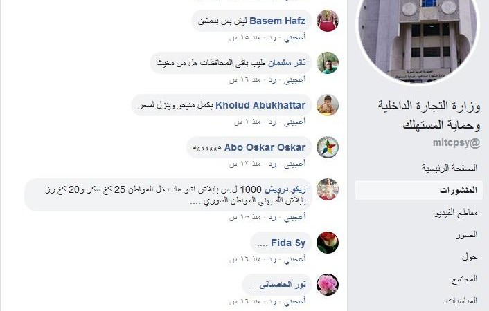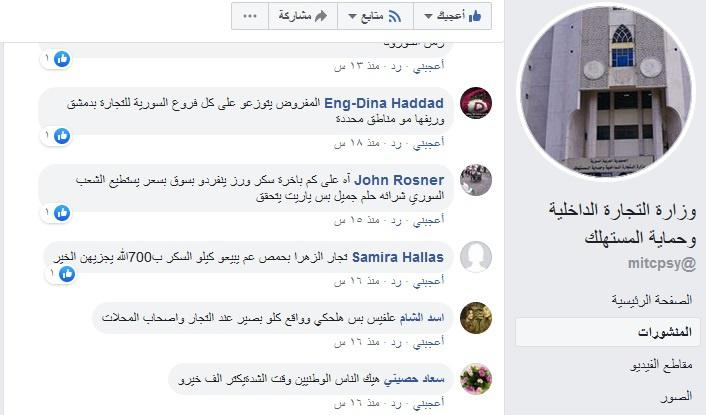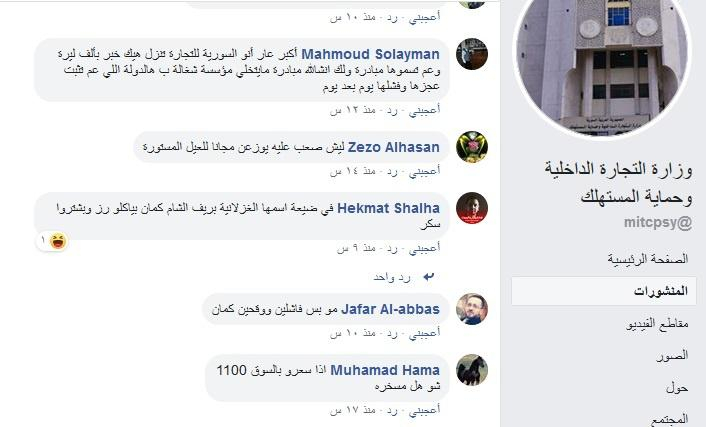 “خلود” تتمنى أن «يكمل منيحو وينزل السعر»، في حين يستغرب “زيكو”: «1000 ل.س يابلاش اشو هاد دخل المواطن 25 كغ سكر و20 كغ رز يابلاش الله يهني المواطن السوري»، ويتبعه “صالح” قائلاً: «يا بلاش»، ويقول “محمد”: «إذا سعرو بالسوق 1000 شو هالمسخرة»، ويؤيده “محمود” قائلاً: «أكبر عار أنو السورية للتجارة تنزل هيك خبر بألف ليرة وعم تسموها مبادرة».