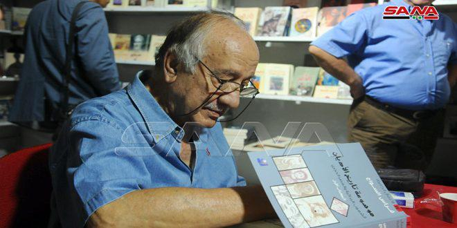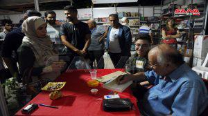 وقع الباحث والمفكر السوري فراس سواح باقة من مؤلفاته وإصداراته ضمن فعاليات اليوم الخامس من معرض الكتاب الـ31 في مكتبة الأسد الوطنية بدمشق.