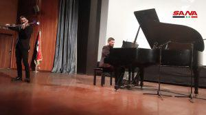 مقطوعات موسيقية كلاسيكية عالمية اختارها الثنائي الموسيقي زياد عباس على الكمان ومحمد ابراهيم على البيانو ضمن أمسية موسيقية جمعت أعمالاً لكبار المؤلفين العالميين على مسرح قصر الثقافة بحمص.