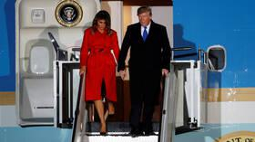 وأظهر مقطع فيديو ترامب وميلانيا أثناء توجههما إلى المروحية التي ستقلهما من حديقة البيت الأبيض إلى المطار ليغادرا إلى لندن.