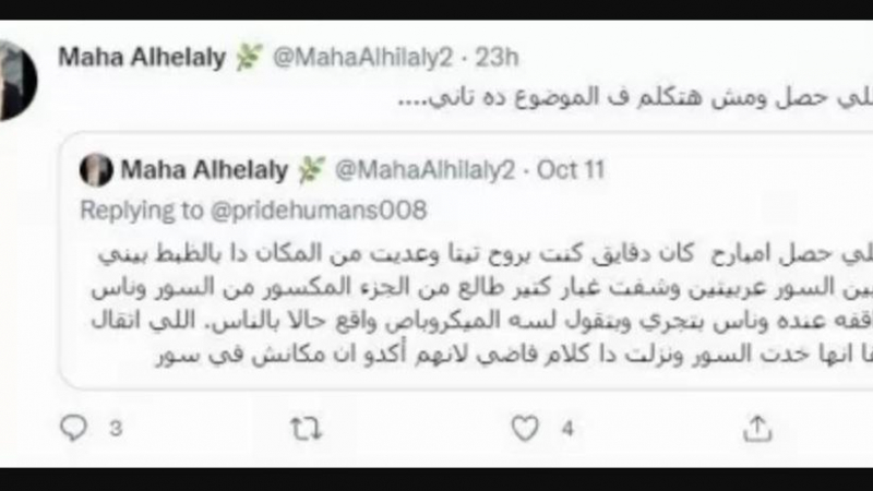 جدير بالذكر أن السيدة التي تدعى مها الهلالي أغلقت حسابها على العموم.