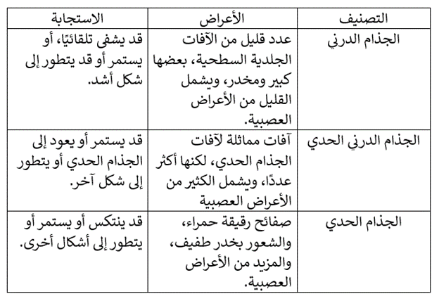 تصنف منظمة الصحة العالمية الجذام على أساس نوع التضرر بالجلد وقدره: