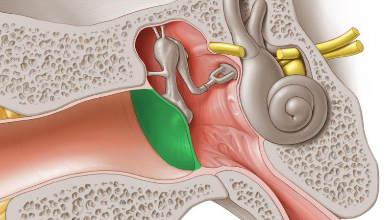 أما رأب الطبلة مع ترميم الأذن الوسطى فهو أكثر شيوعًا من سابقه، ويجرى باستخدام طعم من الجسم مثل لفافة العضلة التي تعد جزءًا من النسيج الضام لاستبدال الجزء المفقود من الطبلة.
