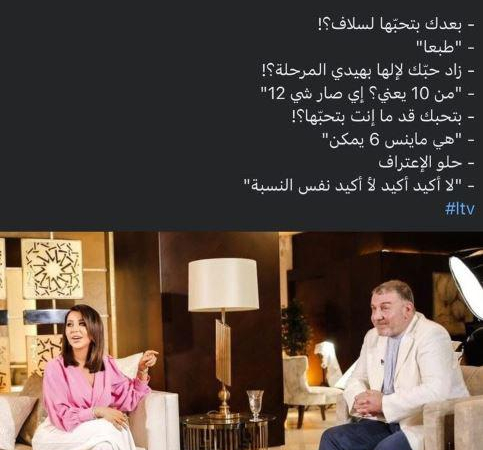 وخلال حلوله ضيفا على برنامج “شو القصة” مع الاعلامية اللبنانية رابعة الزيات، وجهت له الاخيرة سؤال “بعدك بتحبها لسلاف”؟، ليرد قائلاً:”زاد حبي اليها بهالمرحلة من 10 صار 12”.