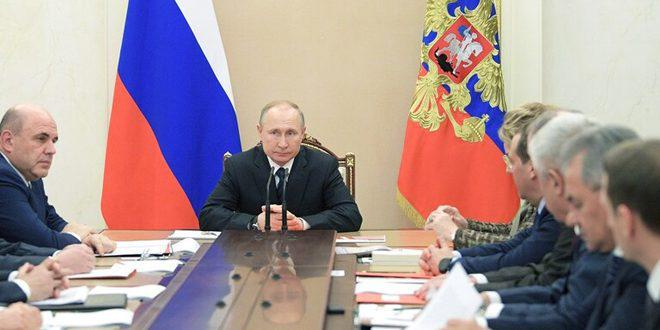 بحث الرئيس الروسي فلاديمير بوتين مع الأعضاء الدائمين في مجلس الأمن الروسي اليوم الوضع في محافظة إدلب وتأثير فيروس كورونا على الاقتصاد العالمي.