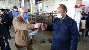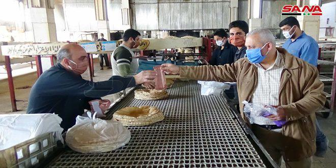 كاميرا سانا رصدت عملية توزيع الكمامات حيث نوه مدير مخبز السفيرة الآلي محمود مطر بهذه المبادرة التي تهدف إلى توعية العاملين بضرورة ارتداء الألبسة الواقية للتصدي للفيروس بينما أكد العامل حسن عبود الحجي أن مثل هذه المبادرات تؤمن سلامة العمال والرغيف.