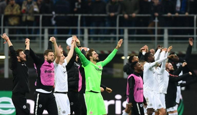 وفي المواجهة الوحيدة بين فريقين حصدا لقب كأس الاتحاد، التي تحوّلت إلى الدوري الأوروبي، صعق أينتراخت فرانكفورت مستضيفه إنتر ميلانو الفائز باللقب ثلاث مرات بفوز 1-0 ليتأهل إلى دور الثمانية.
