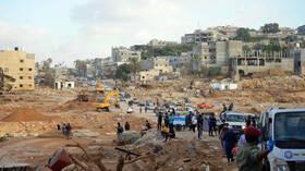 وتواصل فرق الطوارئ انتشال جثث ضحايا الفيضانات شرقي ليبيا، بعد الفيضانات الجارفة التي اجتاحت المدينة.