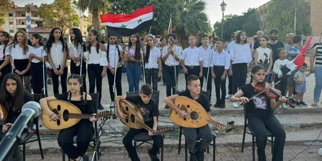 أغانٍ وطنية وفقرات فنية شعبية وتراثية قدمها طلاب وكوادر المسرح المدرسي في عدد من مديريات التربية بالمحافظات ضمن فعاليات تنظمها مديرية الأنشطة الفنية والرياضية في وزارة التربية بمناسبة عيد الجيش العربي السوري.