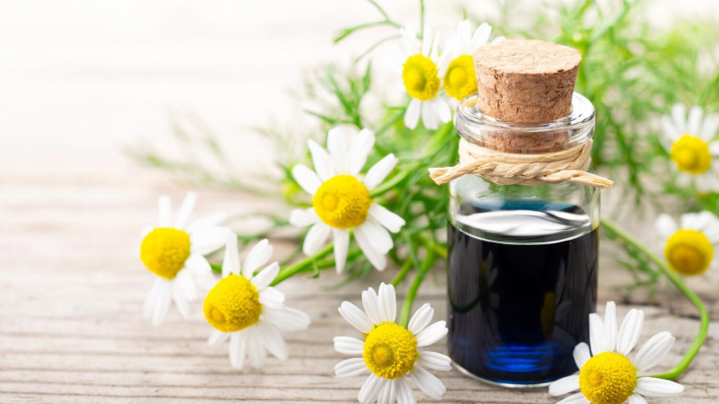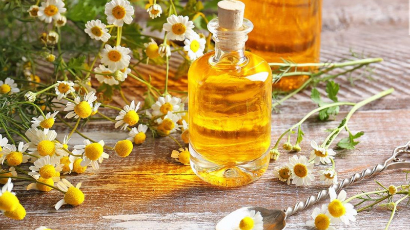 كما يوصى بزيت البابونج الألماني الأساسي لعلاج الحروق أو تقرحات الجهاز الهضمي، وهو مهدئ ويسمح بالاسترخاء والهدوء العصبي والراحة.
