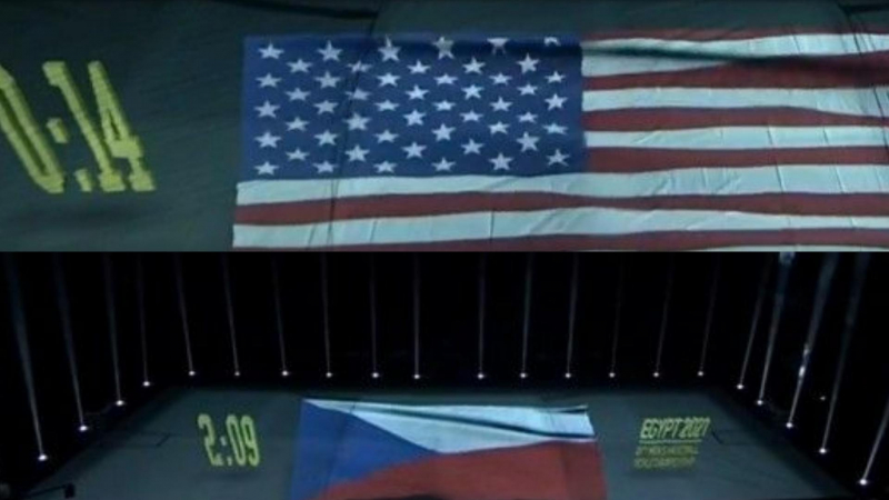 وظهر ضمن الأعلام، علمي الولايات المتحدة الأمريكية والتشيك، رغم انسحاب المنتخبين رسميا من البطولة أمس الثلاثاء بسبب ظهور العديد من الحالات المصابة بفيروس كورونا بين صفوفهما.