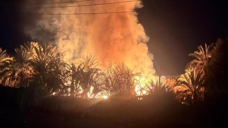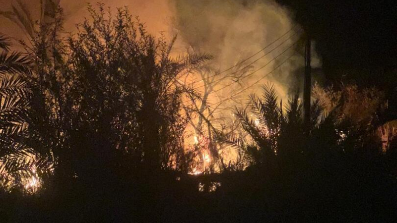 وقال إن النيران التهمت أعدادا كبيرة من أشجار النخيل المثمرة والفاكهة.