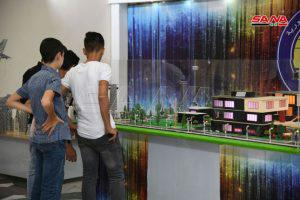 وفي تصريح لمندوبة سانا بينت مديرة المعلوماتية والتدريب مشرفة الجناح المهندسة لينا الزعبي أن الوزارة وبهدف تعريف المواطنين بعملها استخدمت في تصميم جناحها مواد الكهرباء من عوازل زجاجية وعنفات وبكرات ومحولات قديمة وكرات التحذير الملونة التي توضع على الأبراج لتحذير الطائرات إضافة إلى تصاميم ثريات و ليدات موفرة للطاقة زينت منتصف الجناح ما يعكس صورة الجهد الكبير الذي يبذله العمال لإيصال التيار الكهربائي للمواطنين.