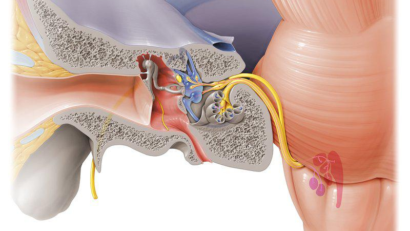 يقع العصب الدهليزي القوقعي في القناة السمعية الداخلية، وهو العصب المسؤول عن التوازن والسمع. تشمل اضطرابات العصب الدهليزي القوقعي: التهاب العصب الدهليزي، والتهاب التيه (التهاب الأذن الداخلية)، وورم العصب السمعي.