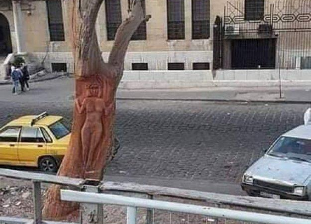 مراعاة للمعتقدات الدينية عند البعض واحتراماً للفكر المختلف بين الشعب، اُستبدلت منحوتة آلهة الحب والخصب «عشتار» على الأشجار اليابسة مقابل المتحف الوطني في دمشق بمنحوتة أخرى.